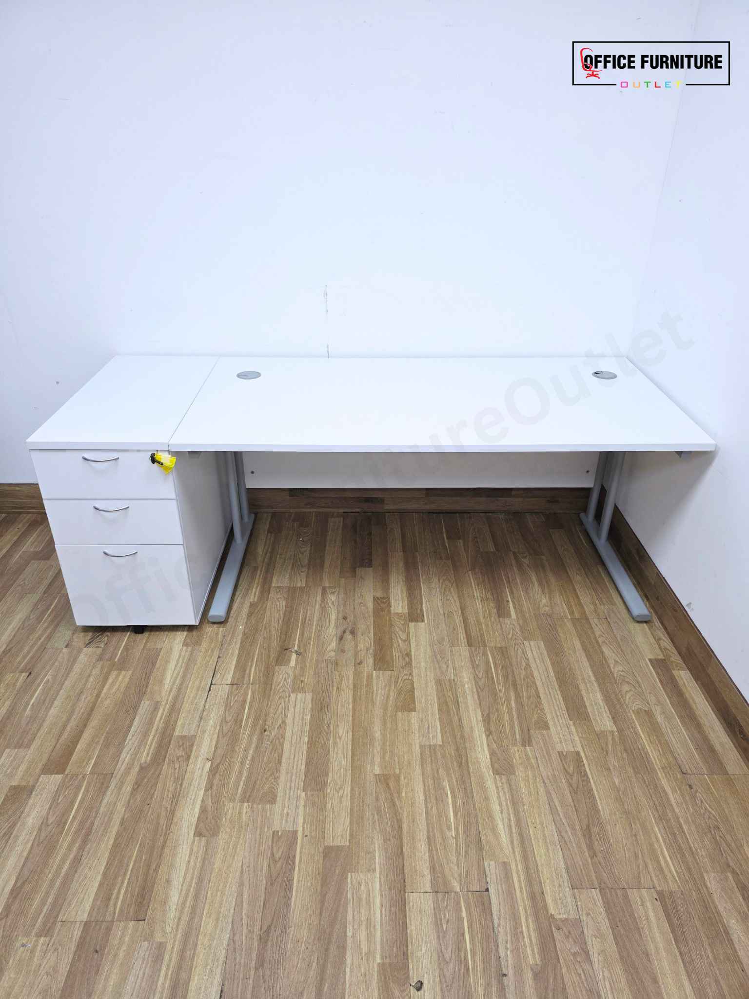 Brand New Straight White Office Desk with Desk Height Pedestal (201cm x 80cm)
