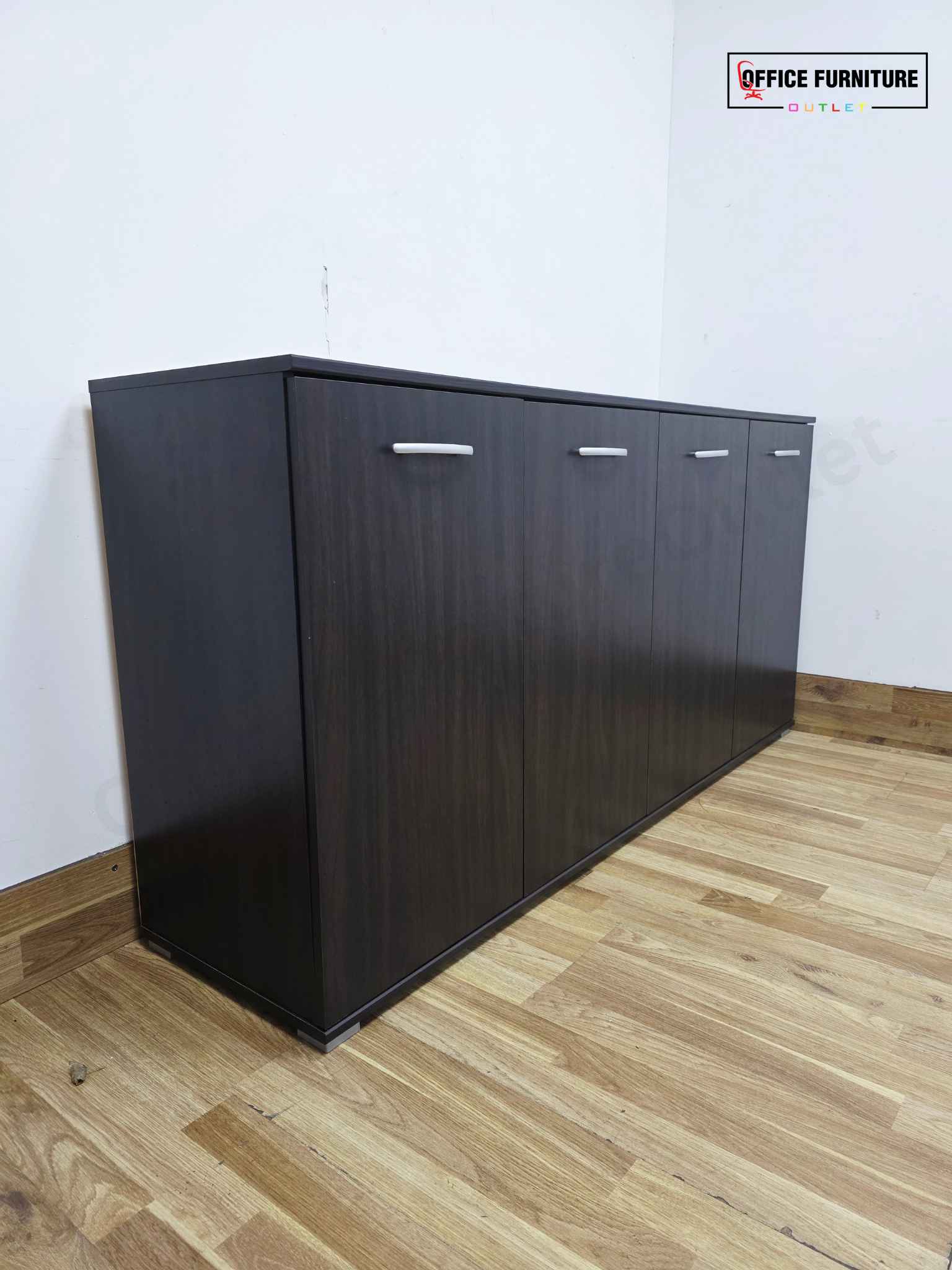 Keep your workspace organised with this sleek dark black ash coloured storage cabinet, designed to offer generous storage while maintaining a modern, professional look. Featuring four smooth-opening doors with silver handles, this unit provides ample internal space for files, paperwork, office supplies, and personal items.
