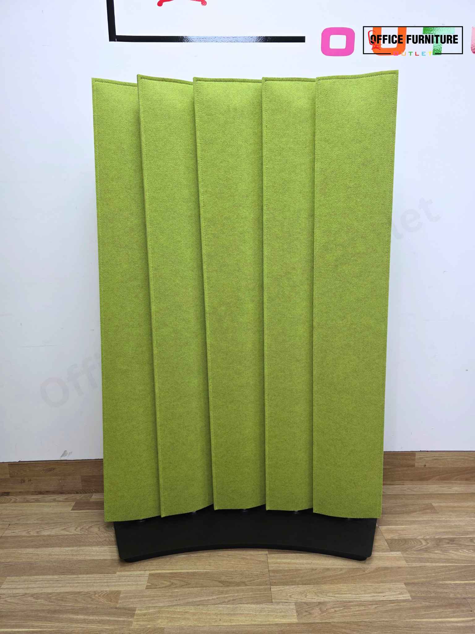 Enhance both acoustics and visual impact in your workspace with this set of 3 lime green BuzziBlinds Classic acoustic screens. Designed for open-plan offices, breakout areas, meeting spaces, and creative environments, this configuration allows you to create a stylish curved layout that improves privacy while reducing background noise. The set includes two screens with 45-degree base plates and one screen with a standard base plate, enabling a smooth curved formation when positioned together.