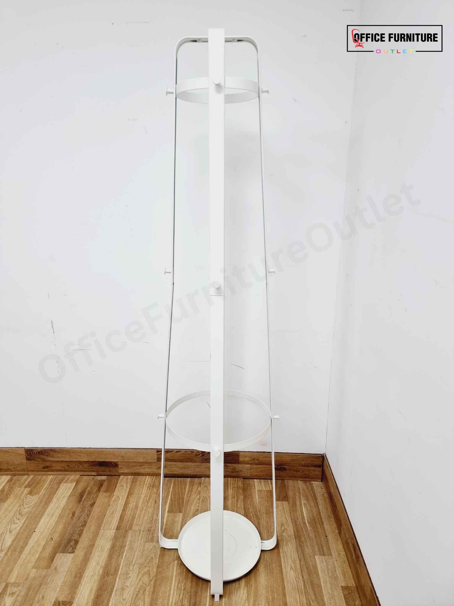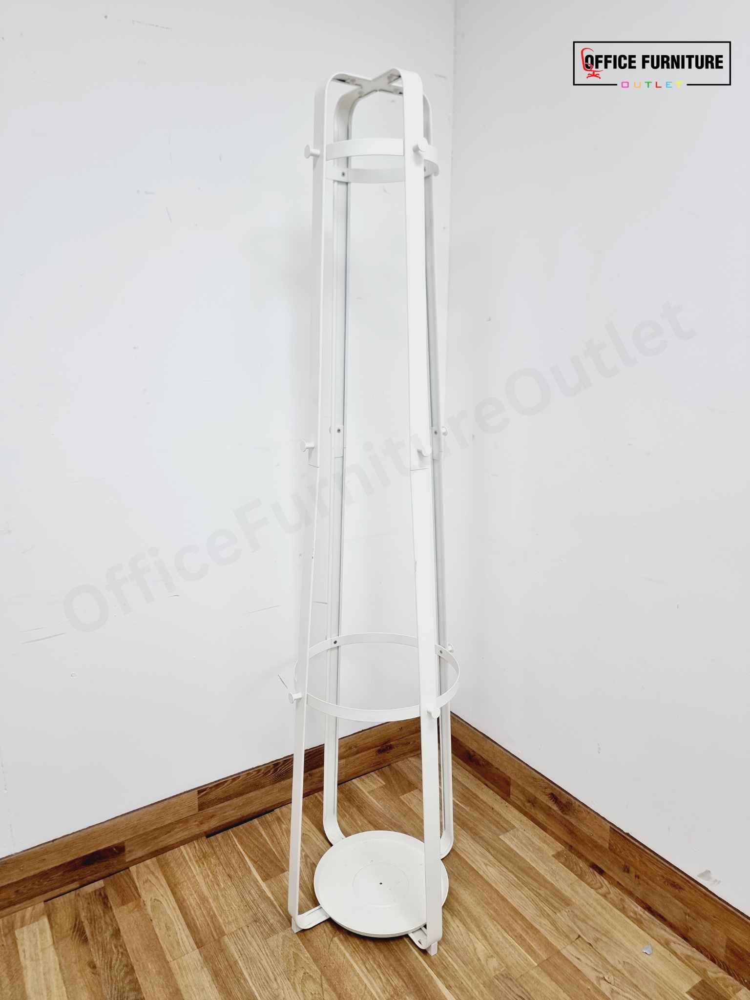 Keep your entryway or office organised and clutter-free with this stylish and functional white metal coat and umbrella stand rack. Designed with clean lines and a minimalist aesthetic, this freestanding rack provides a practical solution for storing coats, hats, bags, and umbrellas in one compact unit.